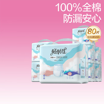 全棉时代优于新国标成人拉拉裤100%全棉防漏透气0致敏囤货装M80片京东自营