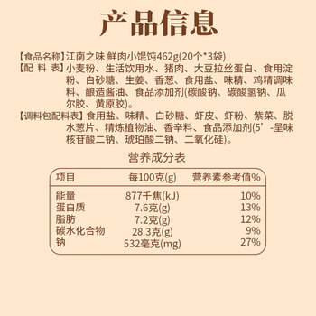 江南之味 鲜肉小馄饨462g(20个*3袋) 小云吞早餐宵夜点心