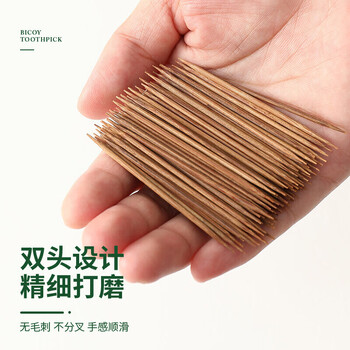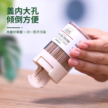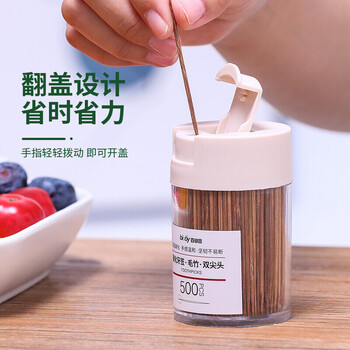 百草园翻盖碳化一次性牙签竹签水果签家用双头剔牙工具桶装1000支2盒装
