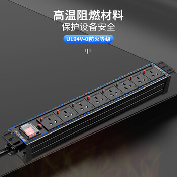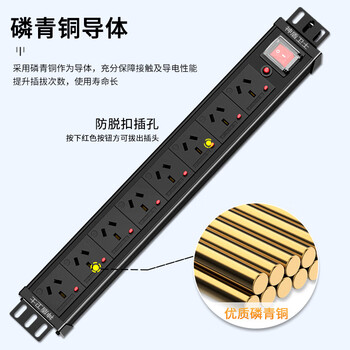 神盾卫士(SDWS)PDU机柜插座8位16A大功率插线板新国标开关过载防脱插排可定制SC38657F