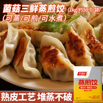 千味央厨菌菇三鲜蒸煎饺1kg/50只早餐食品半成品早点锅贴水饺速冻饺子主食