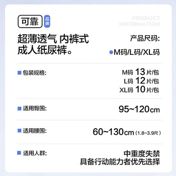 可靠(COCO)春夏超薄成人拉拉裤M78片 臀围80~105cm 老人内裤型纸尿裤尿不湿