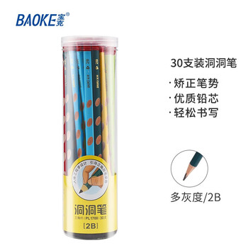 宝克(BAOKE)PL1700 洞洞铅笔2B三角杆铅笔 学生练字笔 儿童矫姿铅笔 30支/桶