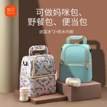 新贝背奶包母乳上班妈咪包蓝冰斜跨单肩外出便携式储奶包 多维尼灰