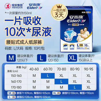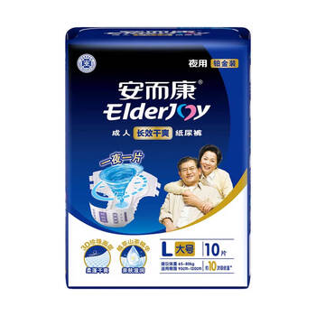 安而康(Elderjoy)长效干爽成人纸尿裤L10片臀围95-120cm成人尿不湿老人卧床夜用