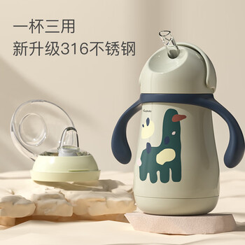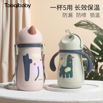 taoqibaby婴儿保温杯吸管奶瓶宝宝喝水杯学饮杯316不锈钢小学生上学杯