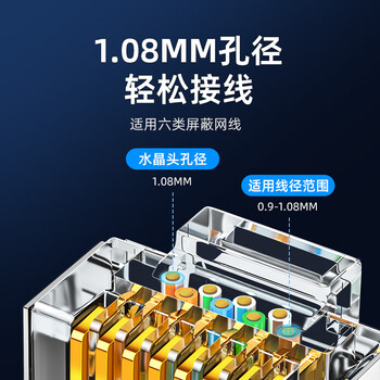 山泽 六类屏蔽水晶头 6类千兆网络接头 工程级RJ45电脑网线连接头 Cat6镀金水晶头 100个 SJ-P66100
