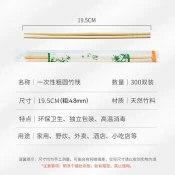 特美居(temeiju)一次性筷子独立包装家用野营方便快餐竹筷外卖餐具粗圆筷300双