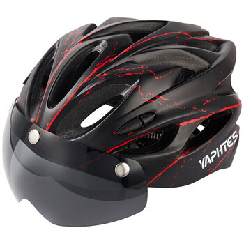 yaphtes骑行头盔自行车头盔国标认证磁吸风镜男女安全帽 黑红色