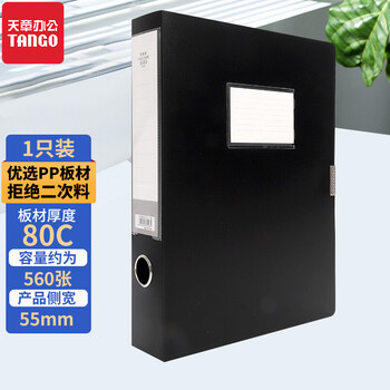 天章 (TANGO)黑色档案盒A4文件盒资料盒55mm侧宽加厚80C财务凭证收纳盒合同收纳纯PP粘扣办公室文具用品