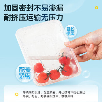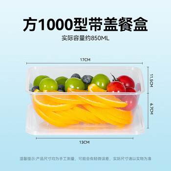一次性方形带盖透明餐盒1000型50套装