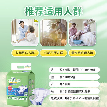 安顾宜舒爽加强纳米消臭成人搭扣纸尿裤M10片臀围80-105cm老年人尿不湿