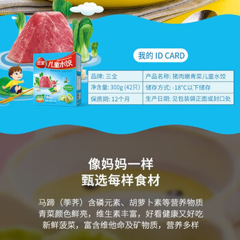 三全儿童水饺猪肉嫩青菜300g*2盒84只宝宝饺子早餐