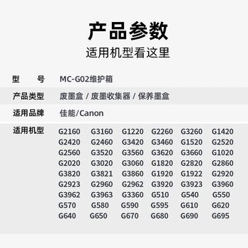 V4INK适用佳能MC-G02保养墨盒g2820保养墨盒g680保养墨盒g580维护箱g3820 g1820 g3821 g3860废墨盒