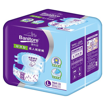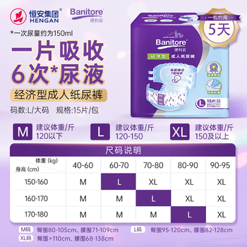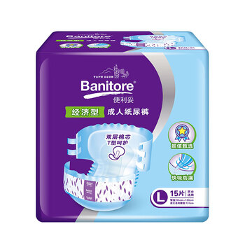 便利妥(Banitore)经济型成人纸尿裤L码15片(臀围95-120cm) 防漏尿不湿透气恒安