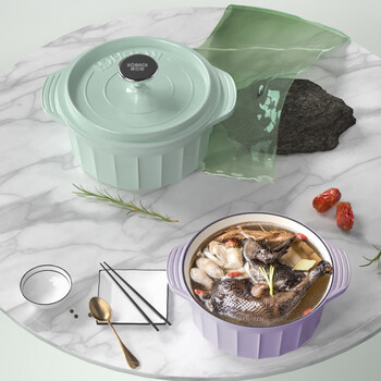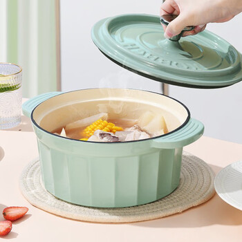 康巴赫(KBH)焖炖珐琅锅 铸铁双耳汤锅 KGZC-T30L 3L 24cm 浅杉绿