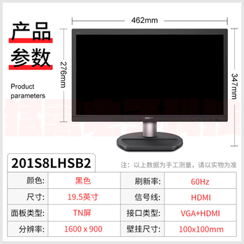 飞利浦(PHILIPS)19.5英寸 高清显示器 TUV低蓝光护眼不闪屏 VGA+HDMI 支持壁挂 办公电脑显示屏 201S8LHSB2
