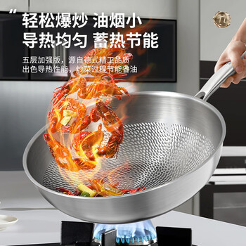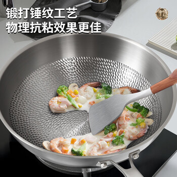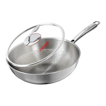 欧乐菲(OLOFE)0涂层不粘钛炒锅平底少油晶钢钛净化版加深捶打炒菜锅燃气灶32cm