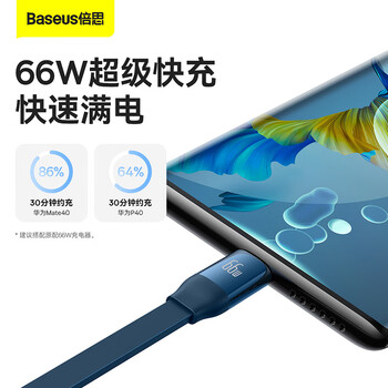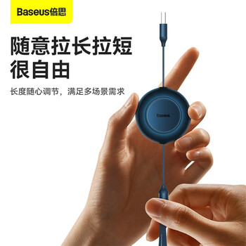 倍思 明镜系列2 随意拉伸一拖三快充数据线USB to M+L+C 66W 1.1m 蓝色*1