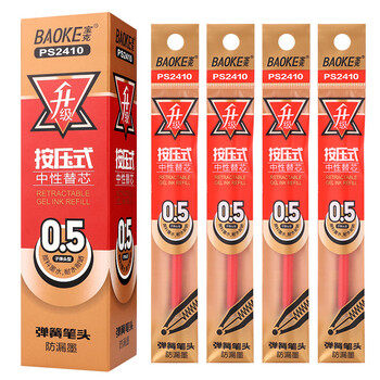 宝克(BAOKE)PS2410 按动式中性笔笔芯0.5mm 水笔签字笔替芯 红色 20支/盒