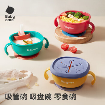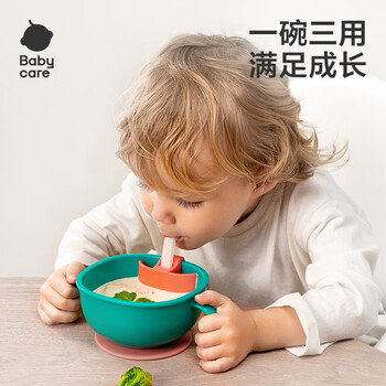 babycare宝宝吸管碗喝汤婴儿专用辅食碗吸盘碗三合一儿童吃饭餐具 洛克黄