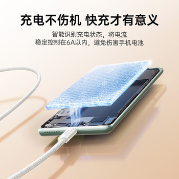 倍思Type-C数据线6A适用华为荣耀超级快充100W/66充电线WPura70/Mate70/60Pro+小米安卓手机车载2米白