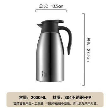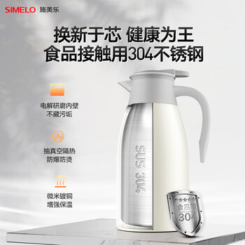 SIMELO保温壶大容量家用304不锈钢防滑底暖壶暖瓶办公室热水壶 2.0L本色