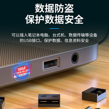 HAILEUSB接口封堵器USB安全锁 端口锁可拆卸 黑色10个 HT-FDH-U