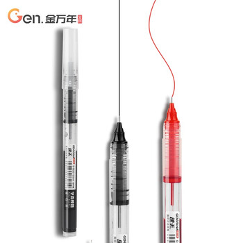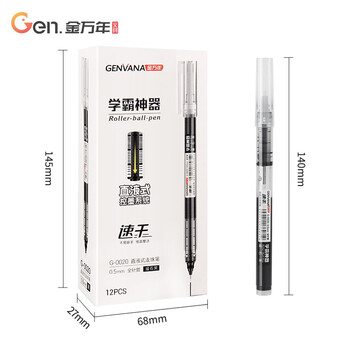 金万年速干0.5mm黑色直液式走珠笔中性笔大容量全针管签字笔学生办公碳素水笔12支/盒G-0020-001