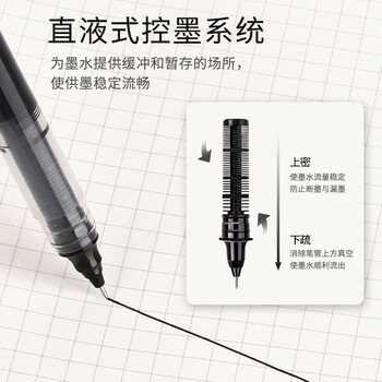 直液笔速干走珠笔办公学生用中性笔针管型签字笔ins无印简约风巨能写黑色12支/盒 G-0020-001