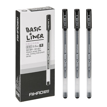 爱好(AIHAO)签字笔大容量中性笔0.5MM全针管黑色中性笔办公用品高颜值一体式黑笔12支/盒 8761