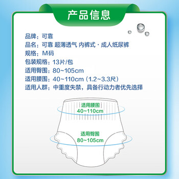 可靠(COCO)春夏超薄透气成人拉拉裤M13片(臀围80~105cm)老人内裤型纸尿裤