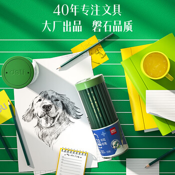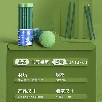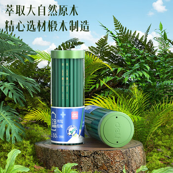得力(deli)50支2B绿杆铅笔六角杆学生考试绘图铅笔书写铅笔33413-2B学生开学文具