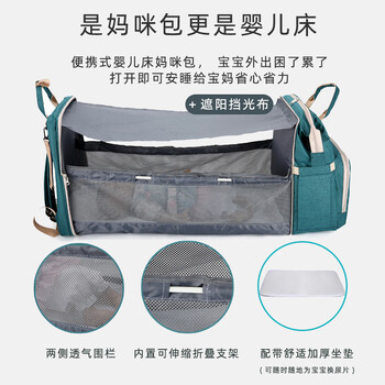 9i9妈咪包婴儿折叠床双肩包背奶包可躺多功能外出包A330雅灰