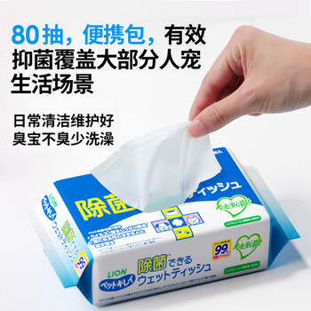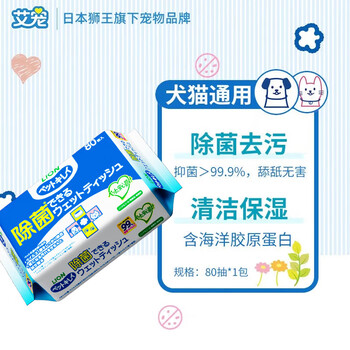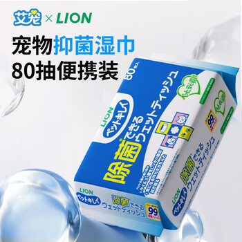 狮王艾宠除菌湿纸巾80片*1包猫狗用除菌除味泪痕