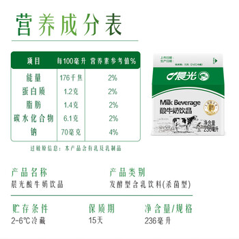 晨光酸牛奶饮品236ml*6盒 低温发酵酸奶饮品原味