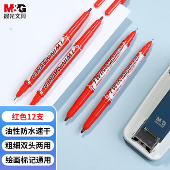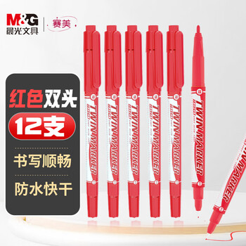晨光文具 红色粗细双头物流笔记号笔 防水马克笔油性笔 儿童学生勾线笔 办公用品12支XPMV7403