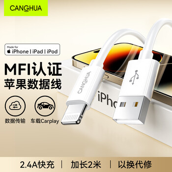 CangHua【MFi认证不弹窗】苹果充电线快充数据线USB to Lightning适用iPhone14/13/12/11手机ipad平板2米