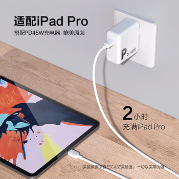 ESCASE Type-C数据线双头PD60W快充加长线3A双充电器线通用iPadPro苹果MacBook华为笔记本CC-60白色1.5米