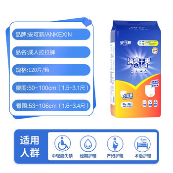 安可新 成人拉拉裤M120片(臀围53-106cm)老人内裤型纸尿裤经典加厚