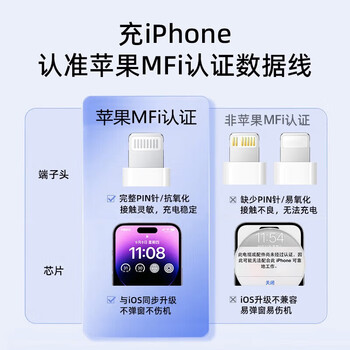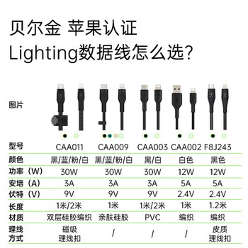贝尔金(BELKIN)苹果充电线 双层编织 MFi认证 苹果手机PD快充 Type-C转Lightning充电线 1米蓝色 CAA011