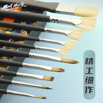 【全网低价】蒙玛特(Mont Marte)海洋铁盒10支装水粉笔 猪鬃水彩画笔丙烯颜料画画笔美术勾线笔儿童油画笔套装BMHS1011美术写生