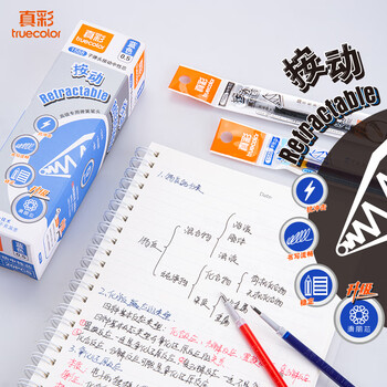 真彩(TRUECOLOR)1588滑丽芯0.5mm红色按动中性笔通用笔芯办公子弹头签字笔学生刷题水笔替芯适用斑马百乐 20支/盒