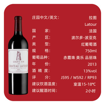拉图(Latour)干红葡萄酒2013年 750ml 【正牌】大拉图