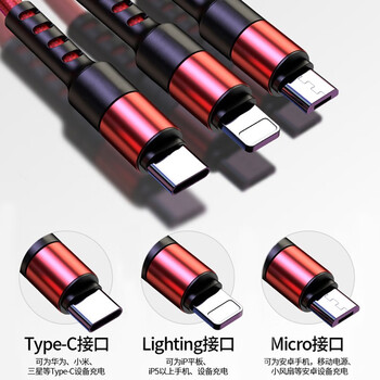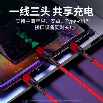 OKSJ【2米加长】 数据线三合一充电线一拖三头Type-c苹果安卓手机充电器线66w快充 车载iPhone14/13