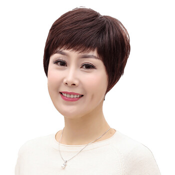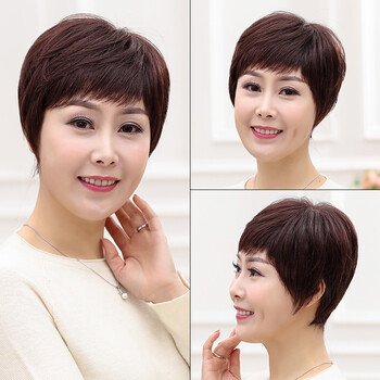 慕斯佰美假发女真发中老年短发妈妈假发套真人发丝全头套 自然黑