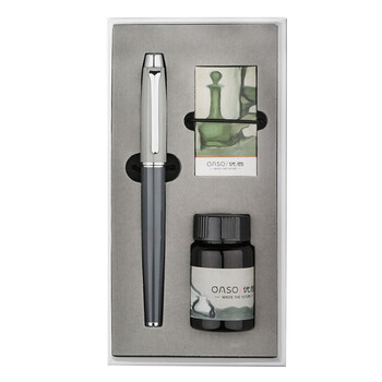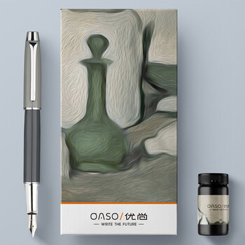 【开学必备】优尚(OASO)钢笔高端礼盒莫兰迪撞色天际灰 钢琴亮漆中性签字笔墨水笔礼盒A8119EF明尖