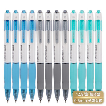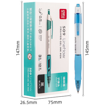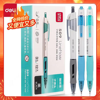 得力(deli)【热门商品】臻顺滑中性笔签字笔 0.5mm子弹头按动笔水笔 时尚办公用品 黑色 12支/盒S09