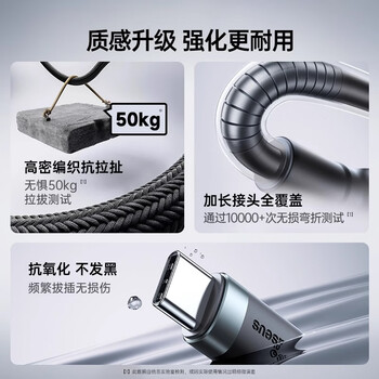 倍思卡福乐Type-C转Type-C极速快充数据线× 1、保修卡 × 1
