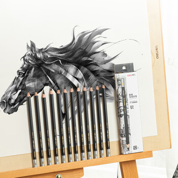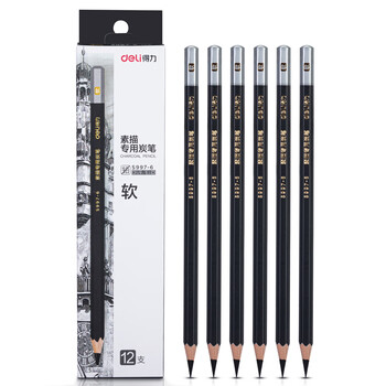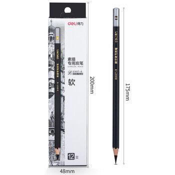 得力(deli)12支/盒软炭素描炭笔初学者碳笔绘画美术生专用工具12支/盒软炭S997-6